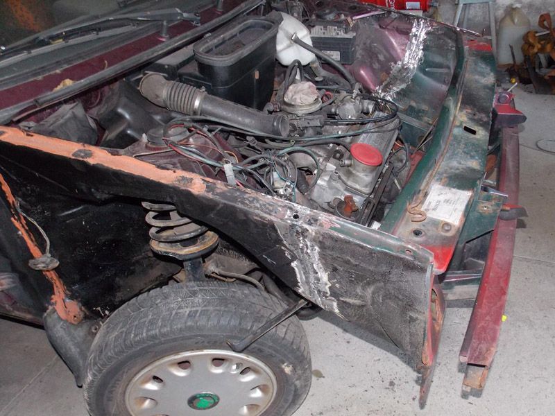 Světla a kapotu jsme zdarma dostali od sponzora na facebooku. Vyvařena podlaha a držáky zadních tlumičů.