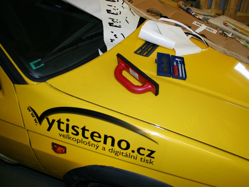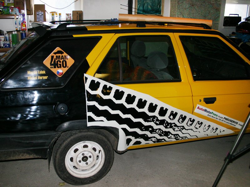 Jaryn částečně polepen. Zadní žlutou samolepku musíme vyrobit znovu, nepasuje odstín. Řezaná grafika na zadní nárazník až po jeho lakování.